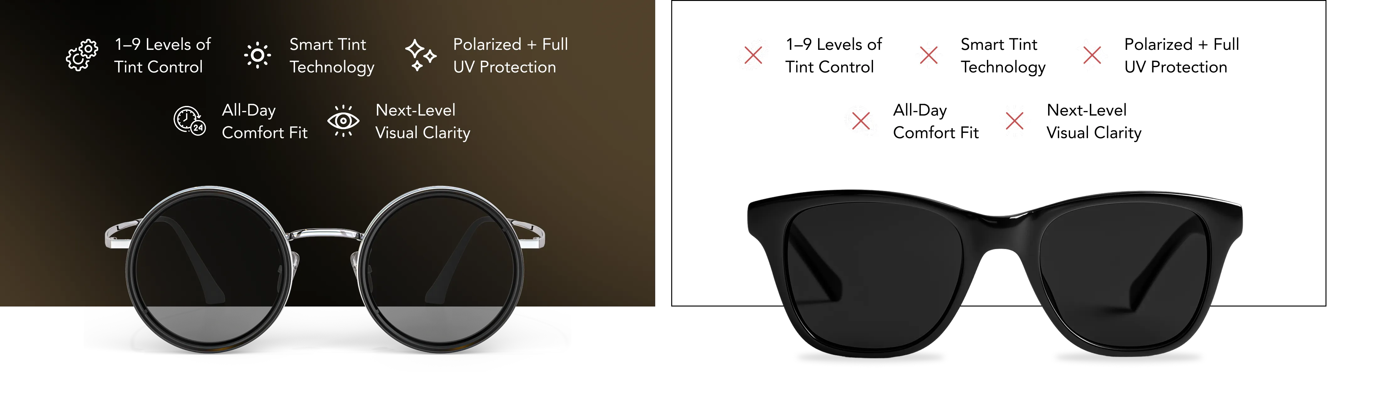 Polarized, adjustable-tint lenses that adapt to your light, and your style.